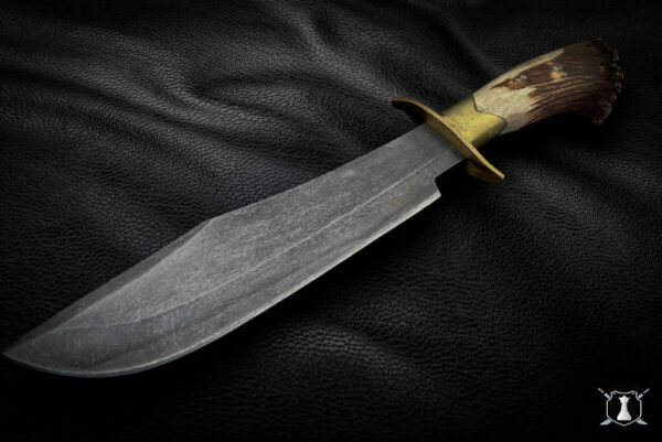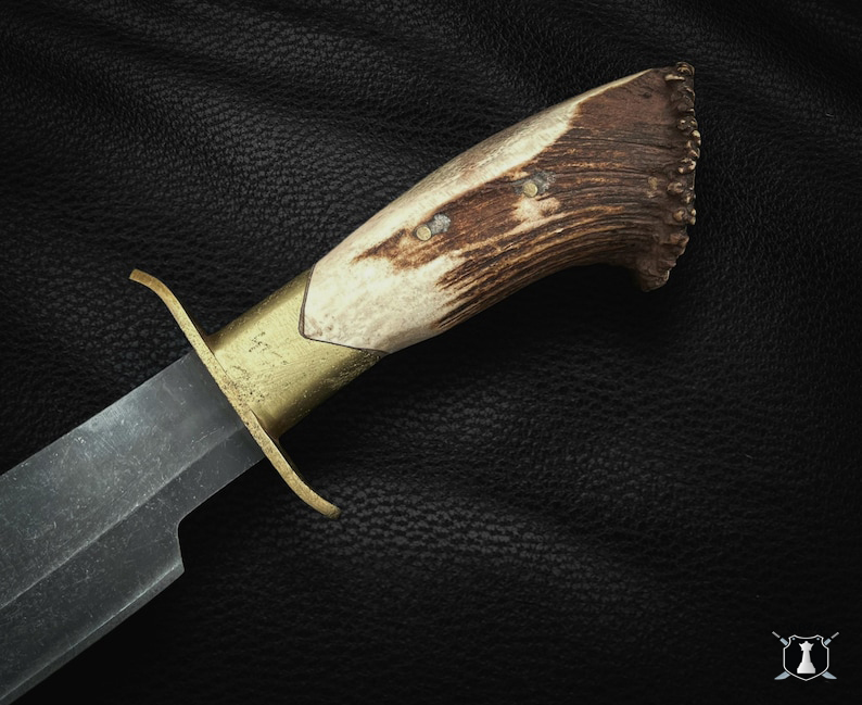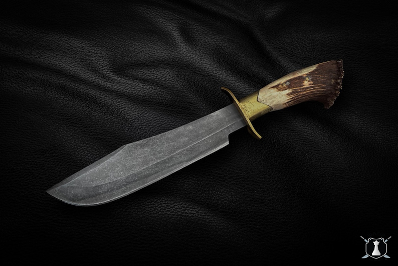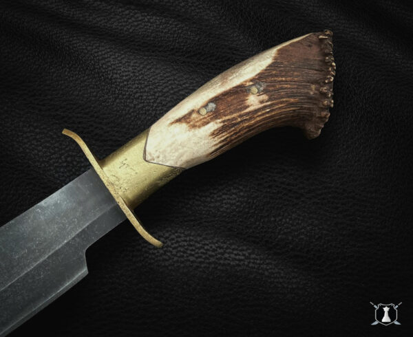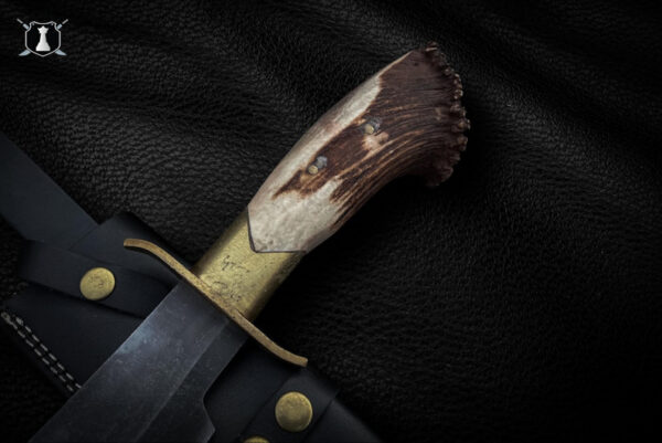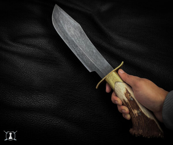 The aged finish, natural antler handle, and full-tang D2 steel blade deliver realism, durability, and visual impact—making this knife ideal for display, gifting, or light field use.