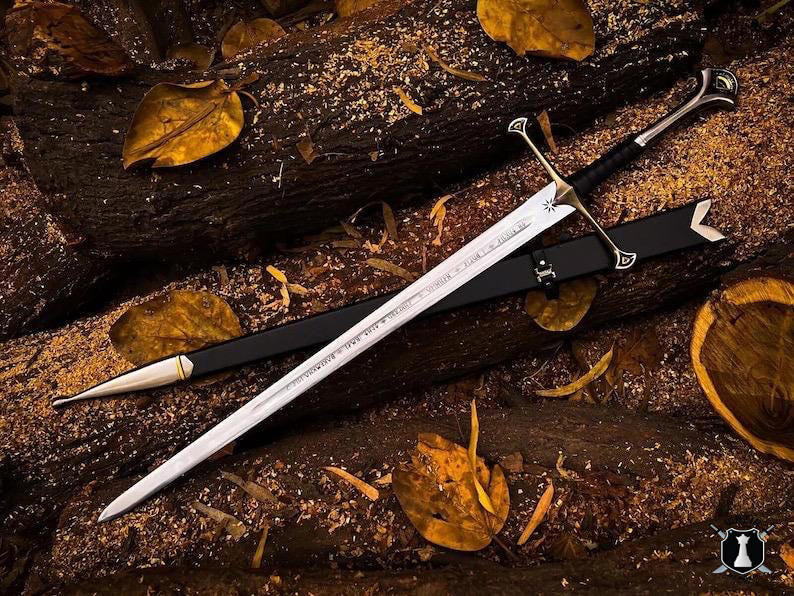 Step into the world of Middle-earth and wield the sword of kings. The Andúril Sword, also known as the Flame of the West, was reforged from the shards of Narsil and carried by Aragorn, the rightful heir to the throne of Gondor. This handmade fantasy replica brings that legendary weapon to life.