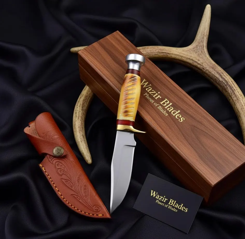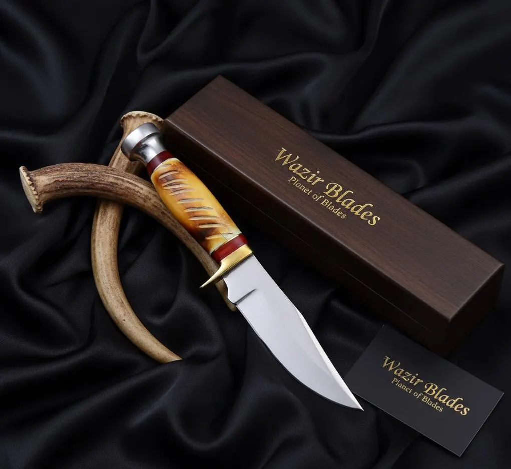 The ergonomic design of the bone handle ensures a comfortable grip, making it a true wilderness companion. Feel the balance and control as you navigate through various cutting tasks. Let the elegance of the bone handle and the functionality of the knife redefine your hunting experience.
