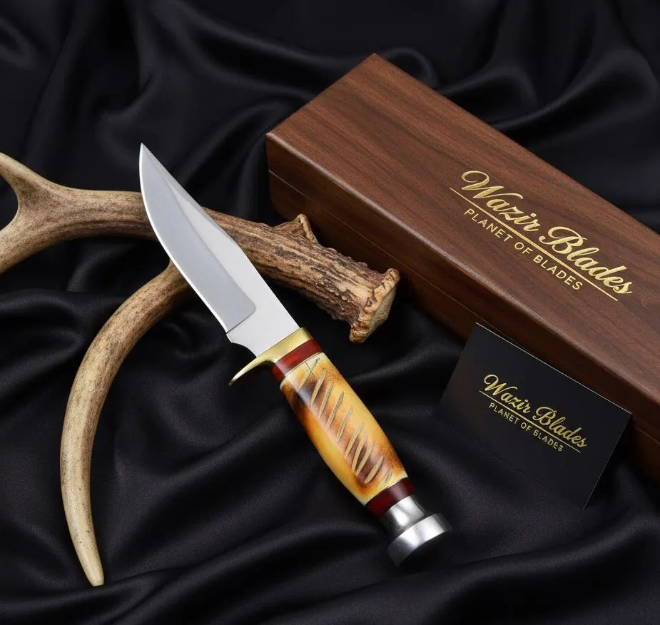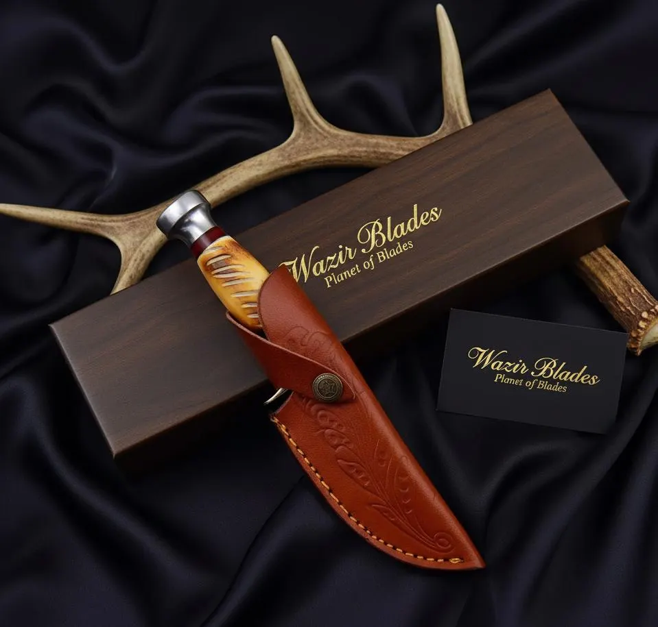 Explore the epitome of exceptional artistry with our Custom Handmade Hunting Skinner Knife. Meticulously crafted by skilled artisans, this knife stands as a testament to precision and creativity. The bone handle, carefully selected for its unique patterns, adds an aesthetic touch to a tool designed for functionality and beauty.