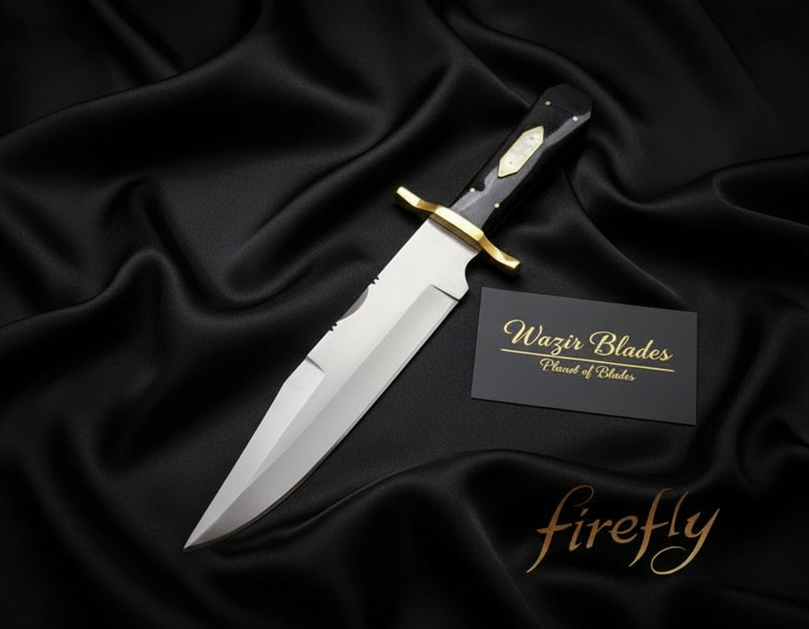 This Firefly Jayne Cobb Bowie Knife blends sci-fi movie heritage with traditional handmade craftsmanship. The high carbon stainless blade, natural bull horn handle, and iconic Bowie silhouette make it a standout collectible and functional hunting knife.