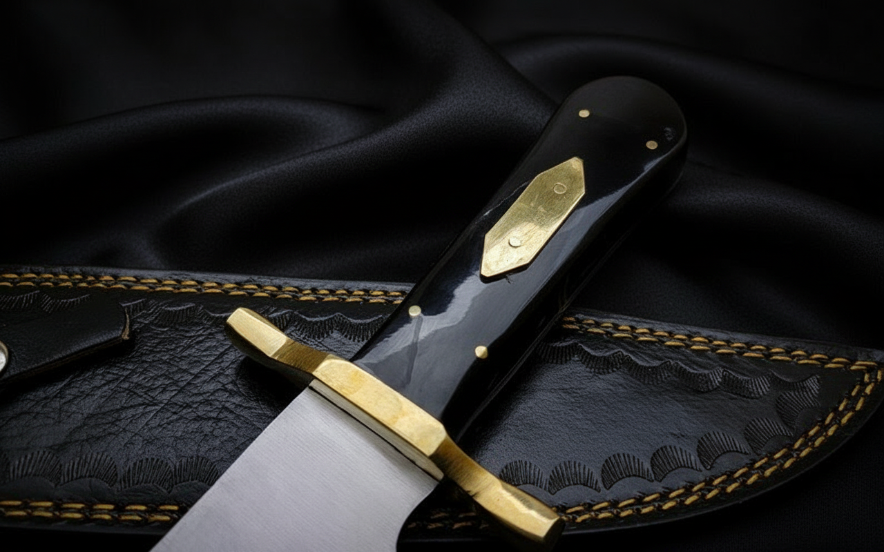 The handle is made from natural bull horn, shaped for comfort, balance, and a bold traditional look. The full-size Bowie profile makes it suitable for display, outdoor use, cosplay, or gifting. Paired with a handmade leather sheath, this knife offers both protection and authentic presentation.