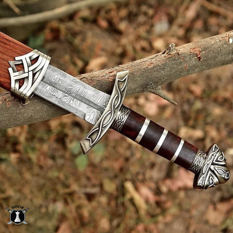 Inspired by Viking swords, featuring intricate detailing on the hilt and scabbard.