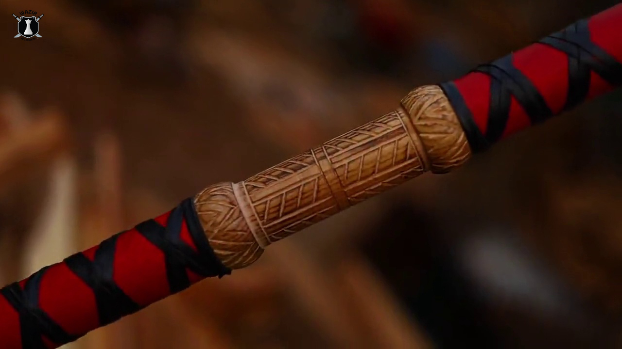 The handle is crafted from premium rosewood, a hardwood known for its strength, grain, and natural beauty. At 41 inches in overall length, this double-handed grip allows for powerful, controlled strikes—giving you the reach and leverage of a true Viking warrior.