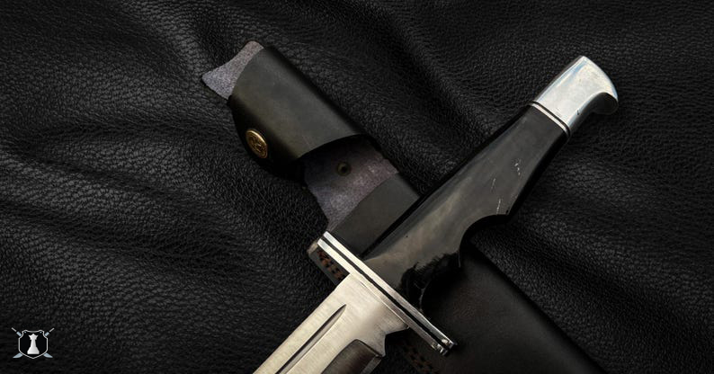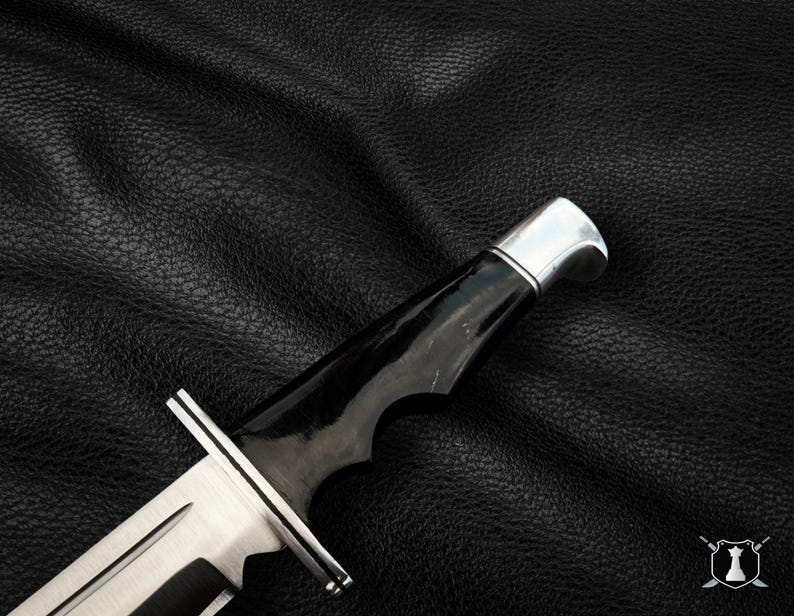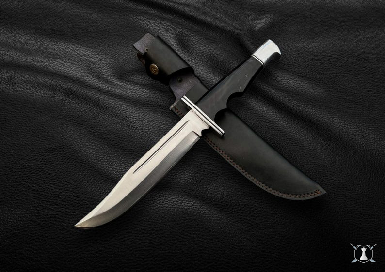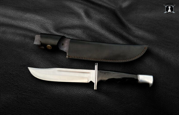 This full-sized replica is handcrafted with a mirror-polished stainless steel blade and a durable bull horn handle, offering both authenticity and a premium feel. It includes a hand-stitched leather sheath, allowing you to display or carry it safely.